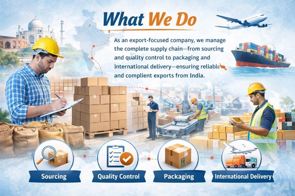 As an export-focused company, we manage the complete supply chain—from sourcing and quality control to packaging and international delivery—ensuring reliable and compliant exports from India.